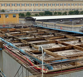 我公司下設(shè)2個分公司和10個污水處理項(xiàng)目部,承包處理各類工業(yè)污水40000噸/天,都達(dá)標(biāo)排放。